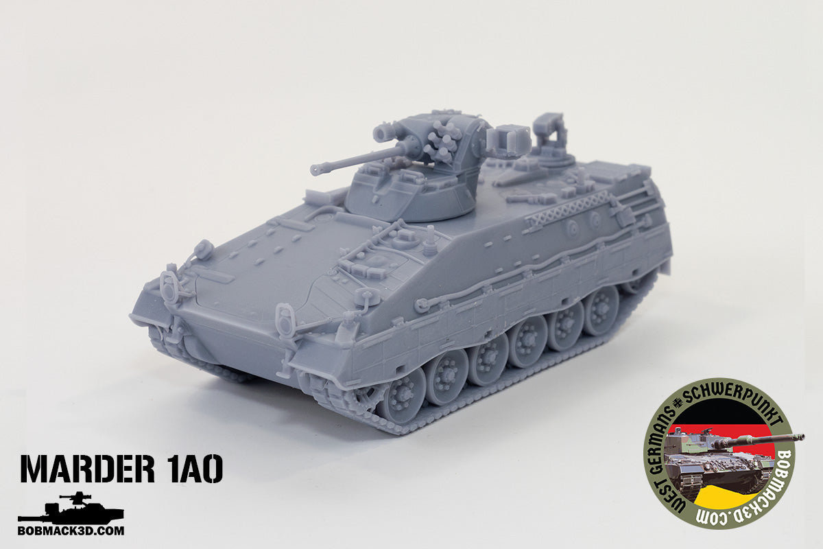 The German Marder 1A0 was the first production version of the Marder infantry fighting vehicle (IFV), introduced in the early 1970s to modernize the Bundeswehr’s mechanized infantry forces. Designed to accompany the Leopard 1 main battle tank, the Marder 1A0 combined mobility, protection, and firepower in a highly effective package. It was armed with a 20mm Rheinmetall MK 20 Rh202 autocannon and a coaxial 7.62mm MG3 machine gun, providing strong anti-infantry and light armor capabilities. The vehicle carried a crew of three and up to six infantrymen, who could fight from within using firing ports. Its design emphasized battlefield survivability, featuring all-welded steel armor and an NBC protection system. The Marder 1A0 set the standard for future German IFVs and remained a cornerstone of NATO’s Cold War armored formations.